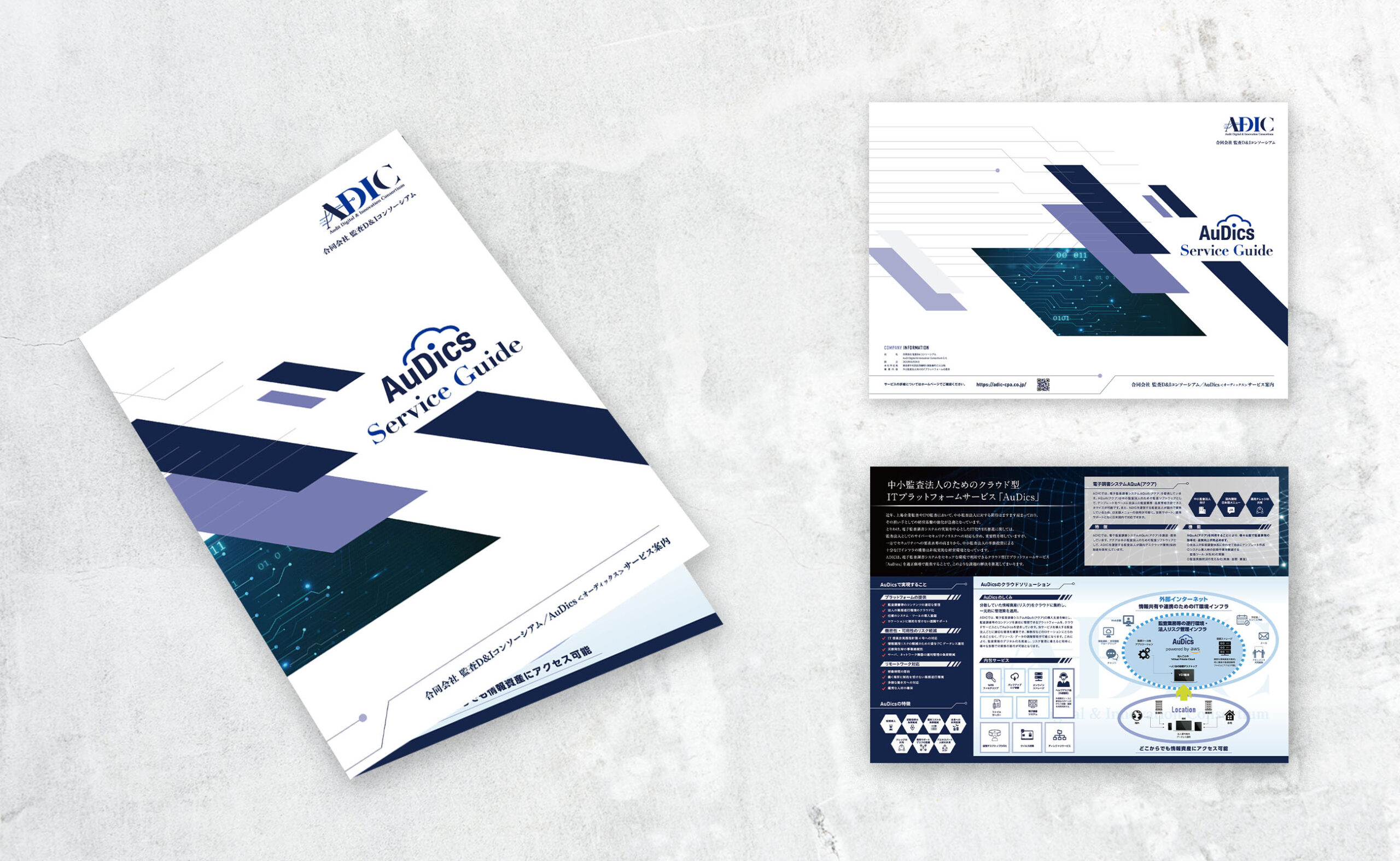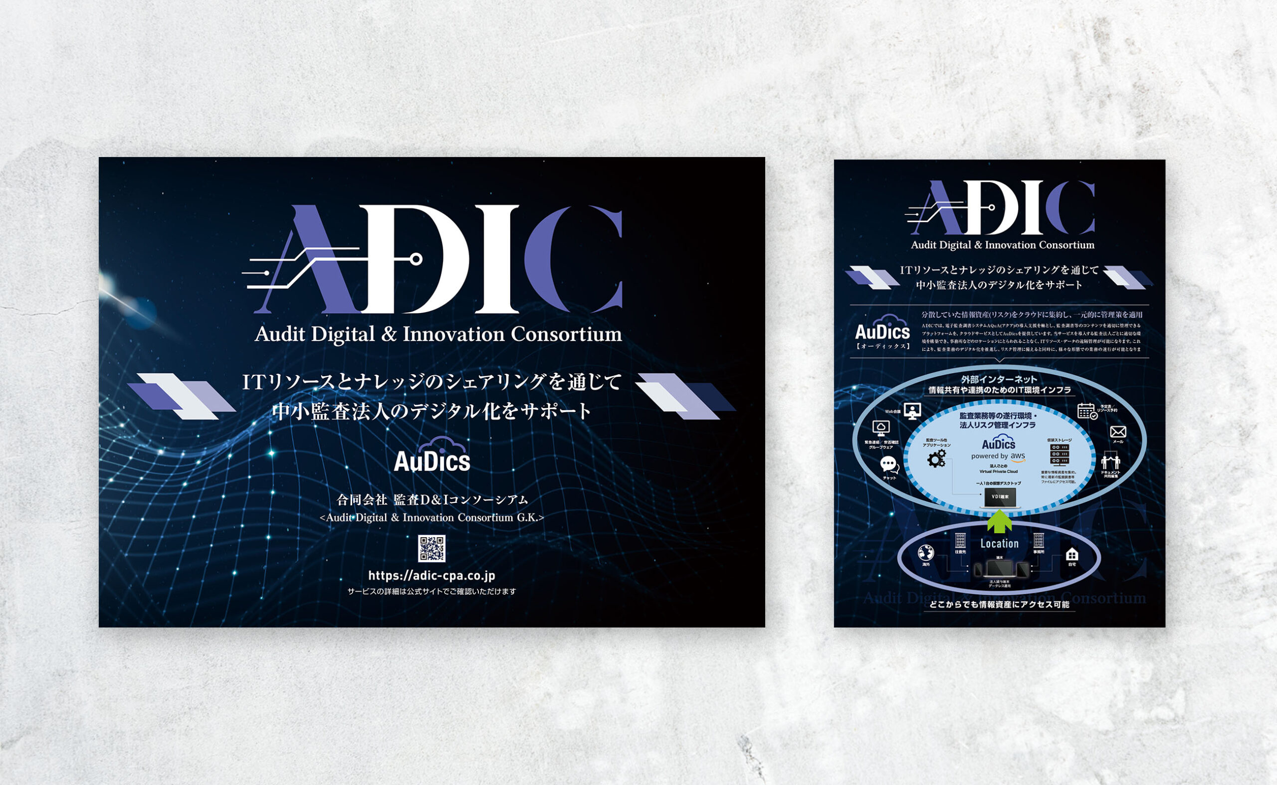 監査D&Iコンソーシアム(ADIC)では、ロゴ・資料・Web・紙・展示まで、全タッチポイントの見え方と言葉を標準化し、ブランドの一貫性を確保。信頼性と先進性を、短い導線でも的確に伝えられる体制を整えました。